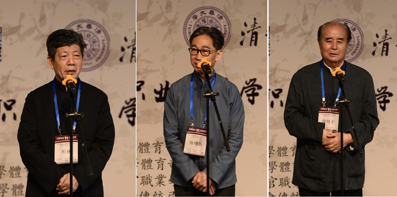 从左至右:清华大学历史系教授彭林先生、嘉礼堂主人张颂仁先生、中国射箭协会教练委员会主任徐开才先生致辞。