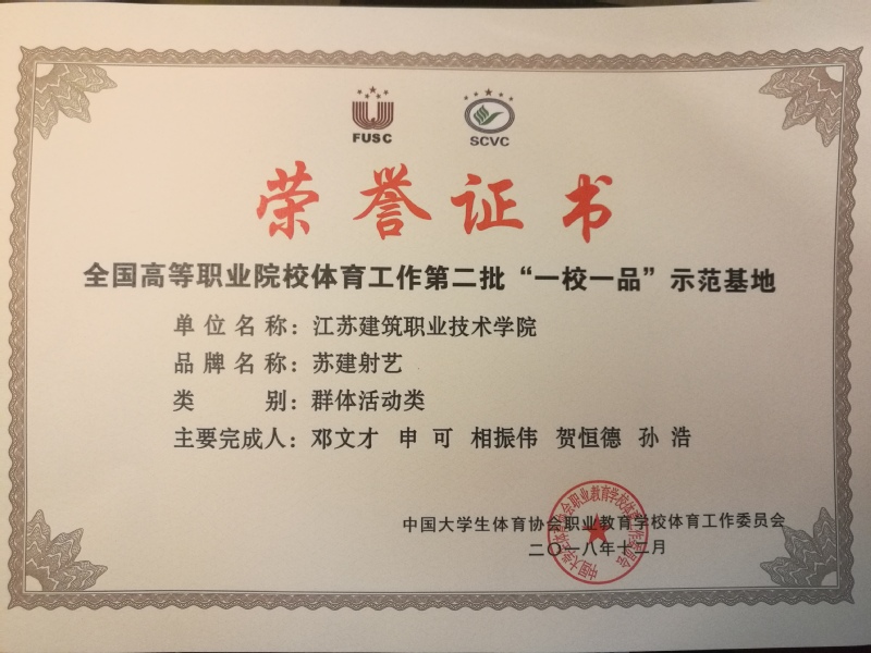 本次颁奖盛典,颁发了全国高等职业院校第二批“一校一品”示范基地、“优秀参赛公司”、“优秀承办公司”等多个奖项。公司体育教学部以“苏建射艺”为品牌,参与了“一校一品”的申报评选,通过初审、复评,并受邀在全国高职体育工作大会上作现场展示及交流,受到专家的一致好评,荣获全国高等职业院校第二批“一校一品”示范基地,yl6809永利经理邓文才教授上台领取了“一校一品”示范基地奖牌。