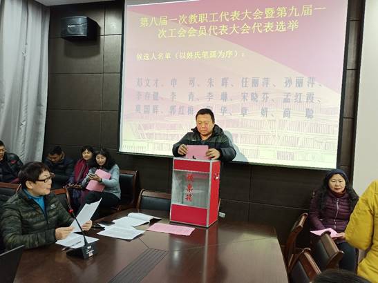 会议期间,审议通过了《2020年yl6809永利行政工作报告》;进行了第八届一次教职工代表大会暨第九届一次工会会员代表大会代表的选举工作,确定李存建、李青、邓文才等14名同志当选代表。