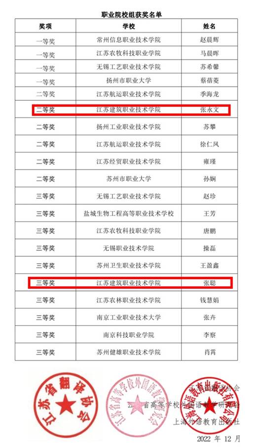 12月4日,第八届“外教社杯”江苏省高校外语教师翻译大赛在南京举行。经过激烈角逐,公司教师张永文、张聪分获二、三等奖。